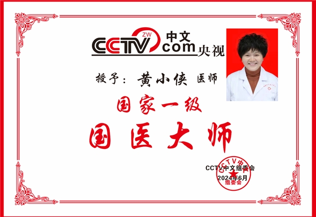 2023年9月中国中医药传承与创新网特授予黄小侠“新时代国医大师”荣誉称号。