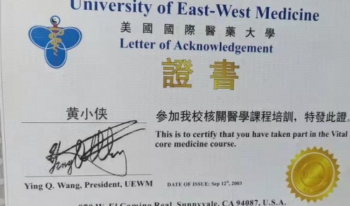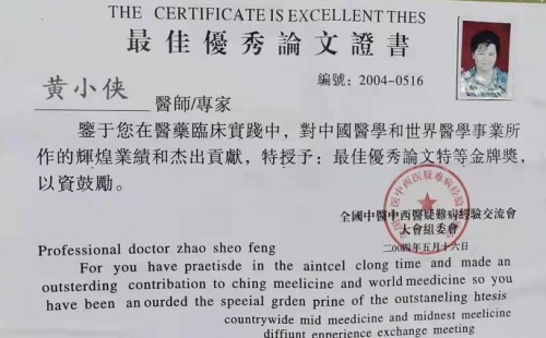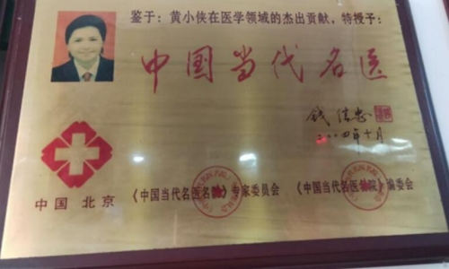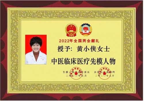 2021年中医协会授予:“黄小侠中国优秀名老中医"光荣称号。