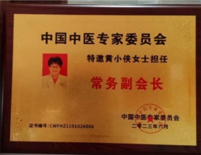2023年6月中国中医专家委员会特邀黄小侠担任“常务副会长”。