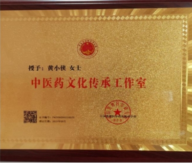 2023年9月中国管理科学研究院授予黄小侠“中医药文化传承工作室”。