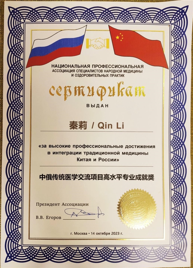 与俄罗斯联邦全国传统医学专家专业协会主席叶戈罗夫-弗拉基米尔合影