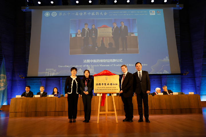 开幕式上,还举行了法国中医药博物馆揭牌仪式及中华老字号中医药海外文化中心(法国)揭牌仪式。