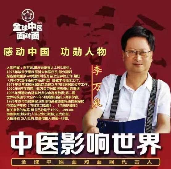 人物档案:李万泉,重庆云阳县人,1951年生。1975年毕业于重庆医科大学医疗系,即分配到原省部级重点中专暨四川省万县卫生学校工作,担任《内科学(含传染病学)及护理》的教学与临床工作。1979年参与该校附属医院的建立与内科病房的诊疗工作。1992年9月在原四川省万县卫校取得高级讲师资格;1995年受聘为台湾省针灸学会客座教授;第二届世界传统医学大会(95年5月美国旧金山)演讲学者。1985年参与当时国家卫生部与高教委委托该校编写的中等医护学校《内科实习指南》、《内科护理学》有关章节的编写,两书已分别于1992、1993年由国家级出版社(人民卫生出版被)正式出版。在临床医疗近二十年的工作中,李医师意识到西医在治疗慢性疑难杂病以及病毒感染性疾病疗效甚微,更不可能根治,遂于92年毅然离开单位,投入到用中医药治疗前述疾病及自费研究并行临床治疗乙肝和艾滋病的艰辛而巨大的工作,至今长达29年。