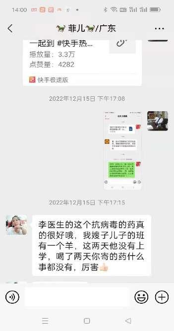 几天核酸检测,在12月1号防疫部门通知我是新冠病毒阳性,症状第一天,我是前几天成为密接者,当天我未觉得有不舒服生病的迹象。和平时唯一不一样的,感觉身体有点累,一句话都不想说,我确定感染了病毒,身边带了李医师免费寄来的治疗新冠病毒的散剂,还是我每天早晨一剂,饭前服。对身体有益无害也,肯定能达到预防和治疗作用。