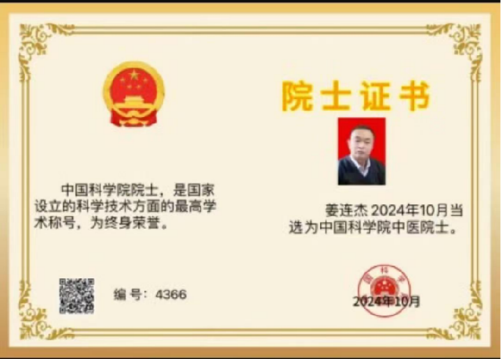 姜连杰,1969年出生,山东省青岛人。中共党员。2024年10月当选“中国科学院院士”,北京姜连杰医学研究院院长,北京中西医慢性病防治促进会慢性病防治专家,姜氏中医治疗疑难病疗法创始人,大美中医药网首席专家、世界非物质文化遗产研究院 特邀院士、中华医学研究会专家委员会主任委员,中医治未病发展联盟副秘书长,中国民间中医医药研究开发协会常务理事,中华医学研究会专家委员抗肿瘤学科专家。