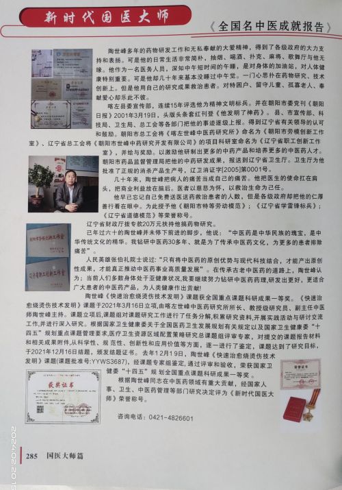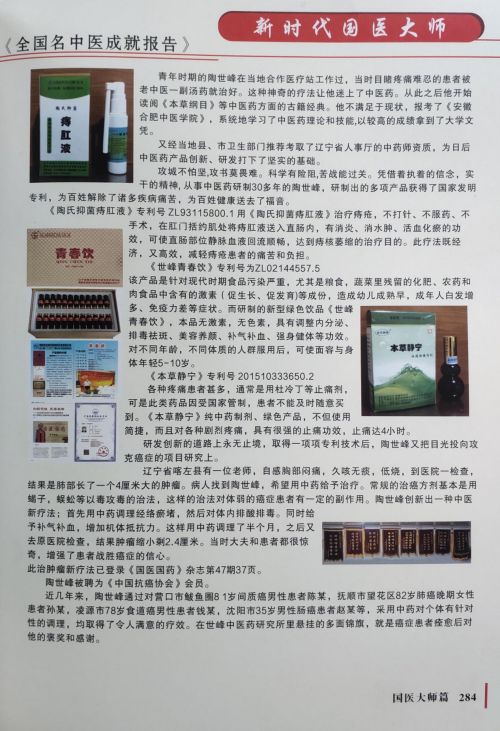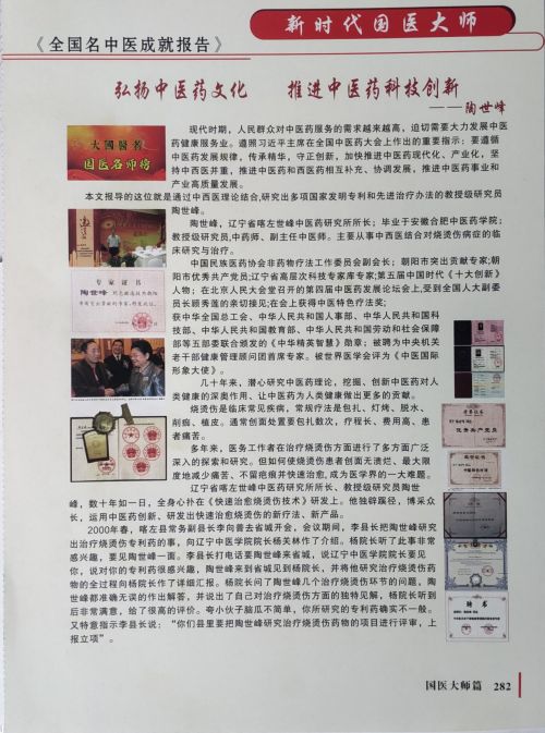 根据陶世峰同志在中医药做出的重大贡献,经国家人事、卫生、中医药管理等部门研究决定评为《新时代国医大师》荣誉称号。