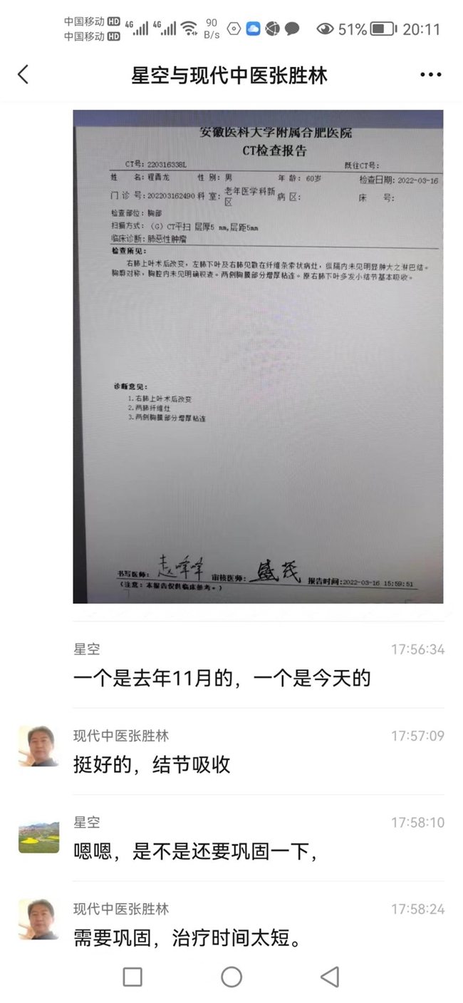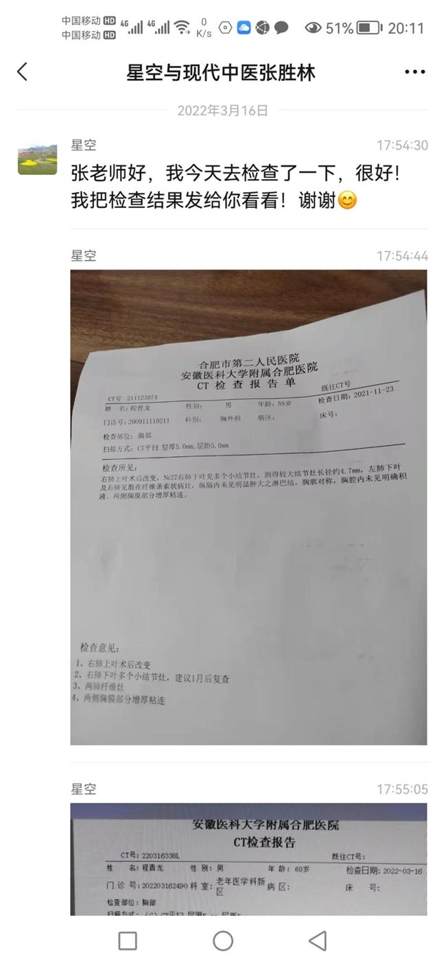六、肺癌手术后多发肺结节中药完全治愈案例