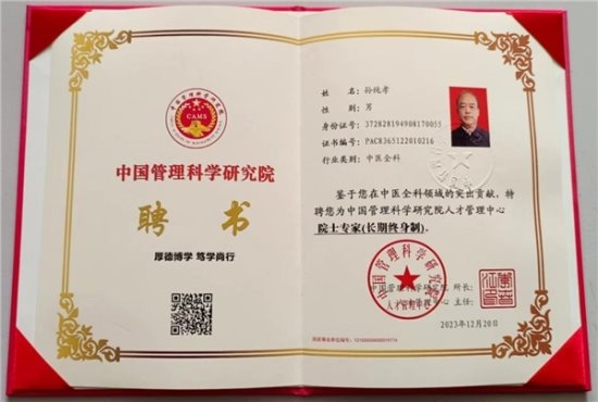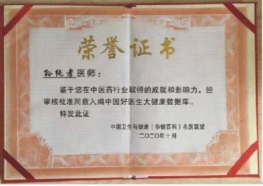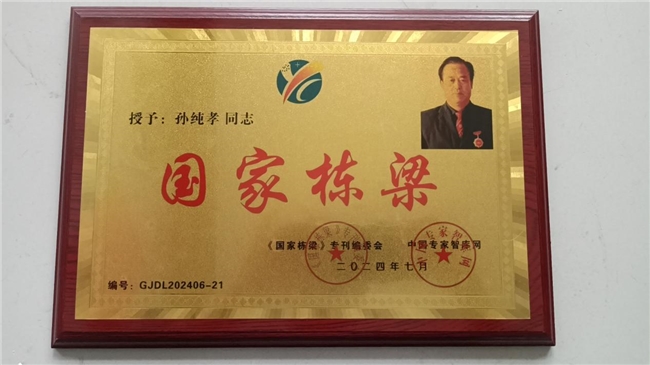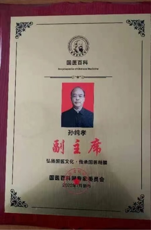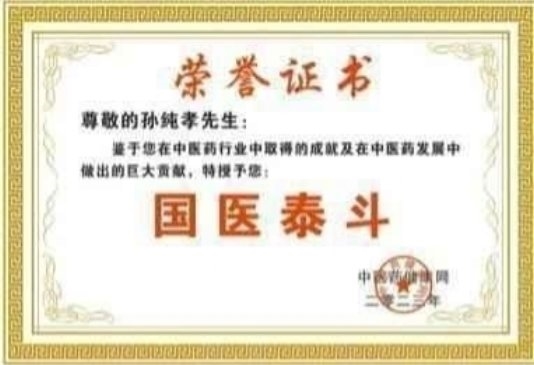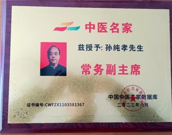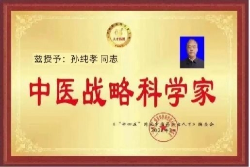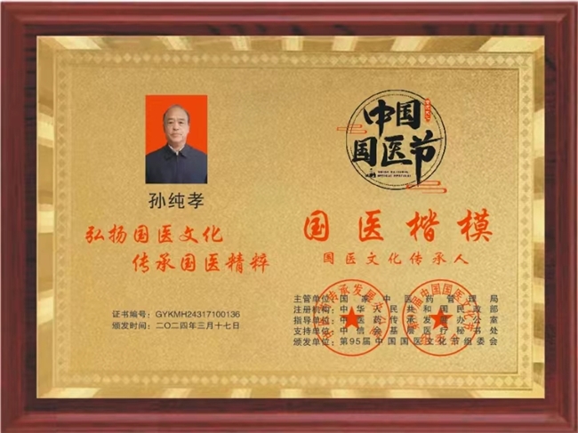 作为一位医务工作者,孙纯孝老师把中国中医继承好、发扬光大作为自己的奋斗目标。数十年不忘初心,一路前行,孙纯孝老师一直在践行自己肩负的使命造福民众,弘扬中医。在其全力奋进之路上,他做出了重大的贡献弘扬祖国的中医传统文化推动中医传统文化的发展,造福人类,孙纯孝老师作为中医行业内领先人物,用新一代的传承人精神去诠释中医的精髓,去发扬中医的光辉去传播中医的智慧,守护人民健康。传承好中国传统医术,惠万家幸福,助祖国强盛。