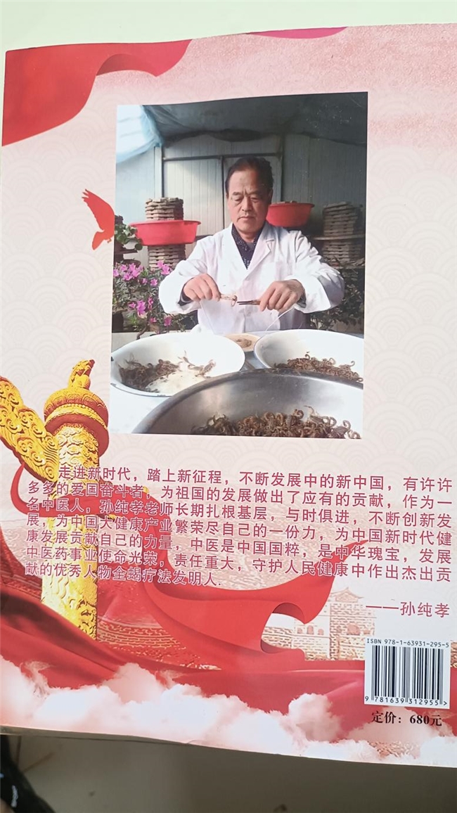 走进新时代,踏上新征程,不断发展中的新中国,有许许多多的爱国奋斗者,为祖国的发展做出了应有的贡献,作为一名中医人,孙纯孝老师长期扎根基层,与时俱进,不断创新发展,为中国大健康产业繁荣尽自己的一份力,为中国新时代健康发展贡献自己的力量。中医是中国国粹,是中华瑰宝,发展中医药事业使命光荣,责任重大。2022年党的二十大特别报道在健康事业发展中,守护人民健康中作出杰出贡献的优秀人物全蝎疗法发明人——孙纯孝老师。