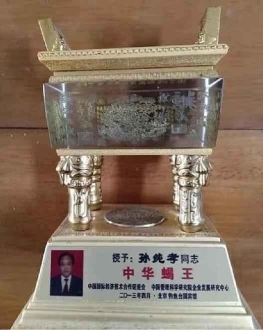 2、孙老师30年来—直从事钳蝎养殖与蝎精制品研发,独创塔式养蝎荣获国家专利,龙蝎酒、蝎毒素、蝎精口服液、蝎精胶囊、蝎多肽等系列产品填补国内空白!