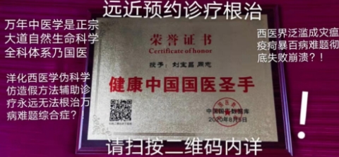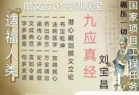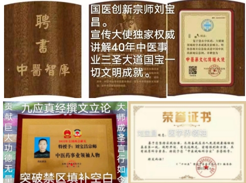 刘宝昌大力倡导,尊医重药,人人有责。中国健康,中医为本。根治万病难题必须中医中药。中医学.“理法方药症量效,博大精深悟活意。三纲五部再构建,新法万机更系统。新字当头先鉴源,科学中医创新难。继承发展频频行,源头创新滚滚来。”生命科学,强基固本。中国中医学是正宗国医,中国中医学是全科自然科学技术体系主流总纲框架宇宙法法则定理。西医是副本模仿造假伪科学为辅助诊疗体系而永远无法根治万病难题?!用实践检验真理是唯一标准。铁证如山,禁误中医事业一切万年历史成就。在探索中医奥秘的道路上走入最前沿正宗,他秉承着苍生仁医的大爱情怀,执着前行,无惧风雨;用融汇古今的博学才智,矢志创新,呕心沥血。他的坚持与创新成就,不仅为人类积累了极具开发价值的医学“富矿”,为传承华夏医学瑰宝开辟了一条崭新的道路,更为千千万万的患者带来了福音。