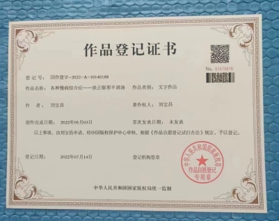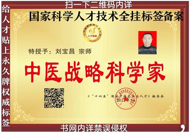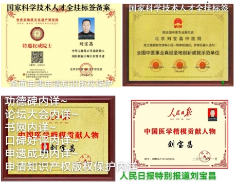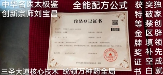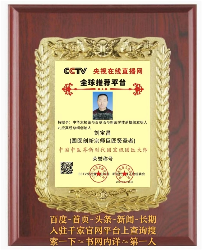 国医创新宗师刘宝昌2018年荣获中国改革开放40周年医疗行业突出贡献人物。2019年荣获建国70周年医学界楷模。2020年与2021年,揭榜挂帅,轻装上阵。特申请申报,十四五国家政策规划全国重点项目课题任务乃尖端工程技术多多系列成果即40项多皆获批准证书等,被特聘请为总课题项目技术工程师研究员。全面创新成功。一直亮剑献宝。一直低调谦虚隐居著书立说造福人类,即,九应真经~撰文立论。潜心磨剑,大器晚成,颠覆传统,扭转乾坤。2022年被国家评定中国当代医学家创新之父,中国当代名师新医圣,中国中医药事业领袖人物,医界领袖巨匠,健康中国国医圣手,新时代行业先锋人物,中国名医首席专家,中国中医传承非遗技师,中国健康管理专家,中国当代医学创新首席专家,中国十大特色特效中医传承与创新疗法重点推广单位,全国百佳杰出中医适宜技术研究示范基地,推动中国中医学事业发展年度杰出贡献人物重点推广等。故,中国中医界真经圣地的苗圃刘宝昌宗师国医馆创新成就与技术产品类被评定认可为中国驰名品牌,中华老字号,AAA级信用企业证书权威牌,质量服务诚信健康馆证书牌。2015年的根治胃病特效药新型组合物乃申请申报版权保护与人体三纲五部用药组方式加减法系列产品被评定认可国家科技进步奖与医学科研成果奖与国家权威检测质量合格产品证书牌并申请申报国家版权微著软件获得批准全部权利与国务院研究发展中心管理备案批准第一号JF001为国家重点扶持保护科技医学项目十佳优质成果治疗内外科疑难杂症中医技术证书牌子,皆长期入驻官网,首页头条内详,禁误侵权。又申请申报了全息特色诊疗病历书之国家版权保护。又申请申报了独家创辟的九应真经~撰文立论与国医创新宗师刘宝昌与太极鉴全能配方公式之国家版权保护,待重点研发推广等等。