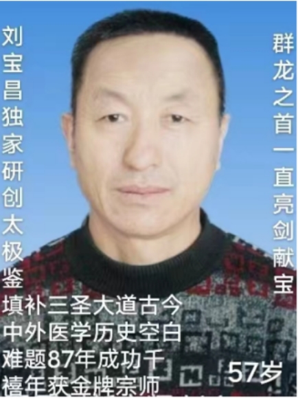 刘宝昌(刘喜军),中国著名国学家、中华名医太极鉴创新宗师、决策最美名中医即中医药事业领袖人物巨匠。一代宗师刘宝昌,黑龙江省人,17岁开始自学研究中医。他博览各类医学典籍群书,吸取中医的丰富营养,探求中医的奥秘,研究传统医学速效大课题等,走出了一条艰辛的中医探索之路,全面创新成功。