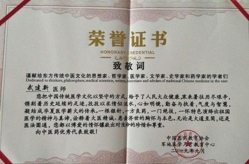 医者仁心,历史会记住武建新为百姓的幸福和中医药事业传承所做出的贡献。医德如碑,责任如山他的济世情怀诠释着奉献价值的真谛。愿他用爱铸就的事业造福更多的人!成武院长将继续禀程着“仁术慈心,修身济众”的神圣天职,心怀赤诚,孜孜不倦,愿在有生之年,为弘扬中华中医文化贡献力量。