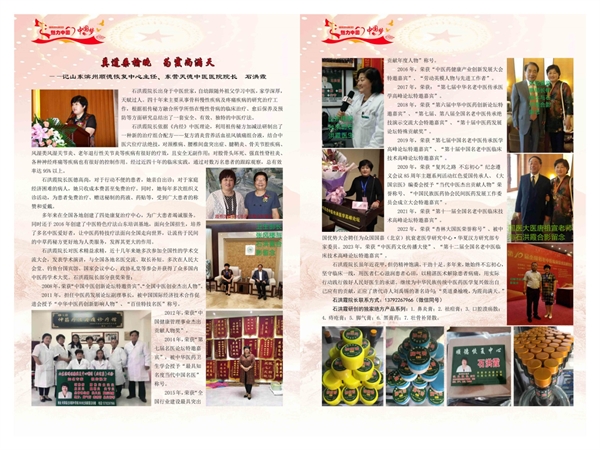 她学贯中医,广汲传统中医民间精华,博采众长,躬耕杏林,广济苍生,经过近多年的理论研究和临床实践,她对中医结合诊疗手法已经形成了一套自己完整的理论体系。她是我国中医药文化忠实的传承者和创新者,为全国的全民健康事业写下了浓墨重彩的一页。她就是新时代国医大师石洪霞。
