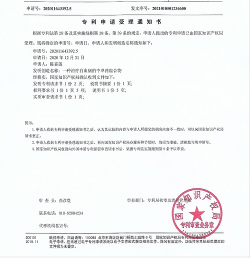 一种治疗白血病的中草药组合物申请国家专利