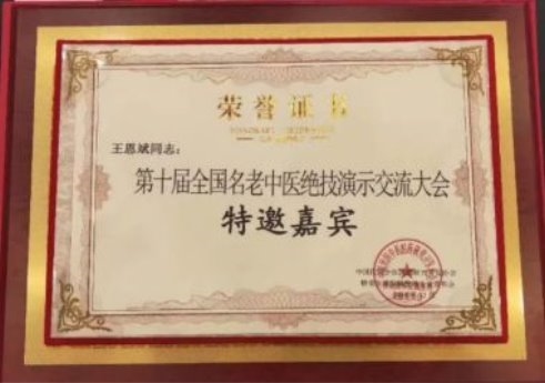 2019荣获第十届全国名老中医绝技演示交流大会特邀嘉宾。2019被收入中医祖庭仲景智库成员,并获得中国针灸协会颁发的传承证书。